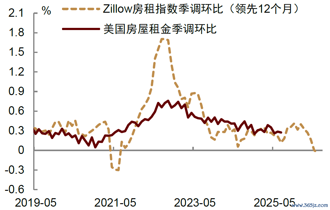 其他方面,食物(环比0%)和动力(-1.1%)价钱增速均较上月主见回落,有助于裁减中枢CPI同比反弹对合座CPI的压力。房租通胀变化不大,主要居所房钱环比从上月0.2%小幅上升至0.3%,业主等价房钱增速捏平于0.3%。房租通胀旅途与具有一定超过性的Zillow数据所展示的趋势基本一致。